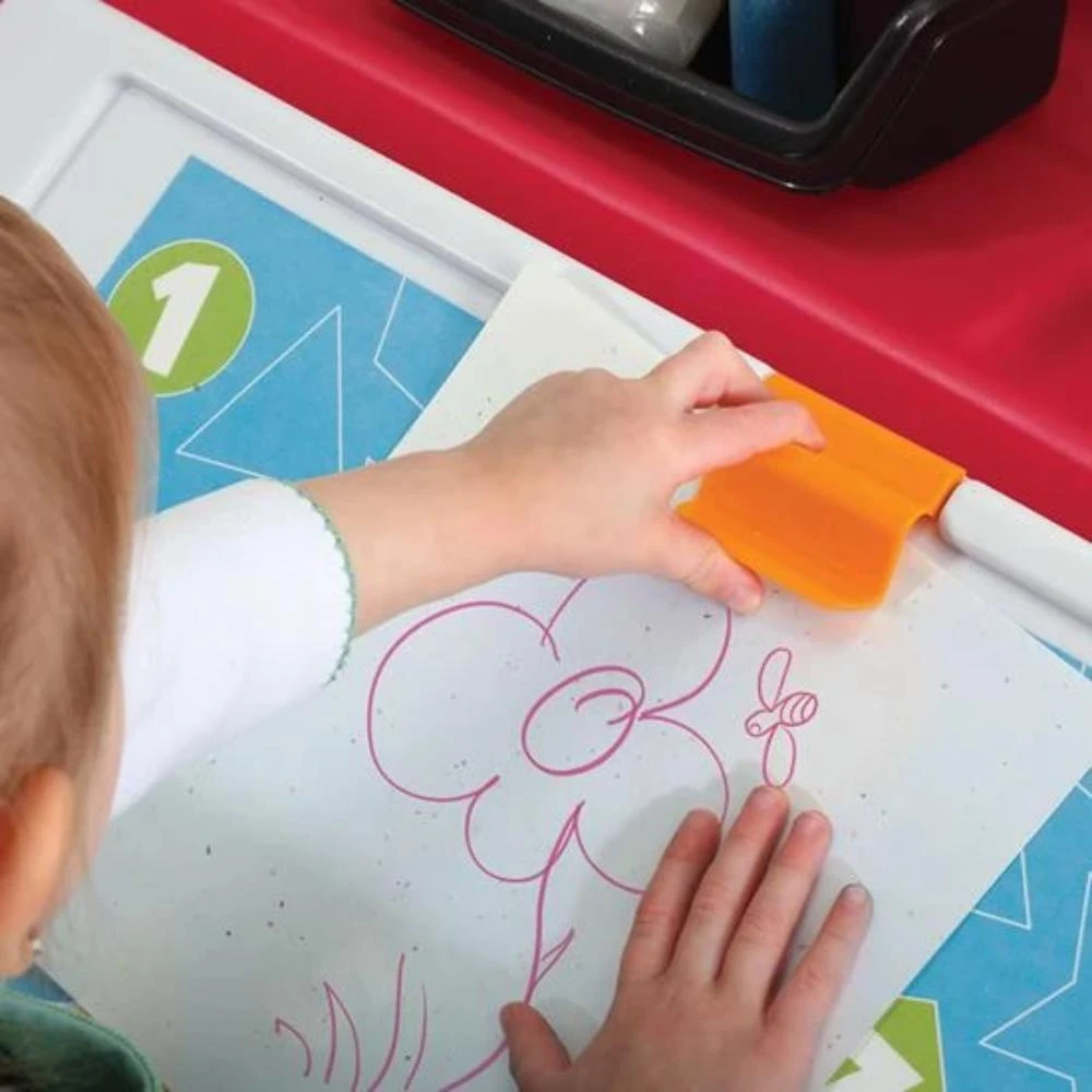 - Lid doubles as an art space – use as a coloring or writing surface or for other fun activities, such as putting together puzzles!