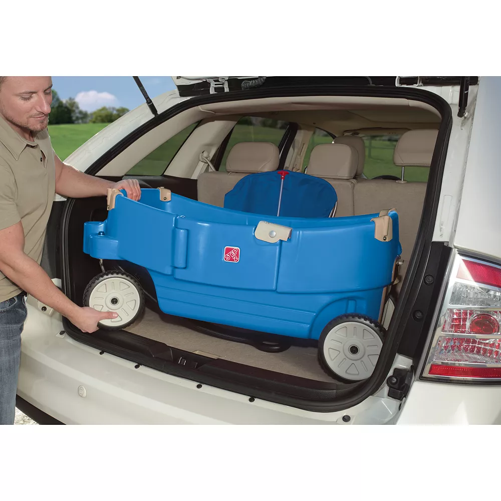 This Step2 All Around Canopy Wagon features a multifunction design for a fun-packed ride outside.
