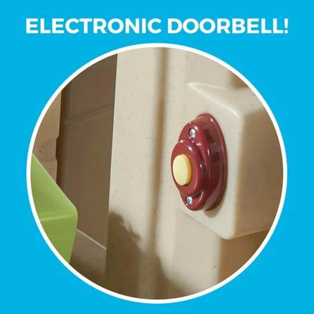 With such a cozy home of their own, kids can’t wait to play in this outdoor kids playhouse. The open design of the Step2 Charming Cottage™ allows interactions at every turn through the Dutch-style doorway, large open windows, and outdoor tabletop. When friends arrive to play, they can announce their arrival with the real working doorbell! Other realistic features like the fireplace, skylight, molded-in sink and shelving, and more delightful elements enhance imaginative play. Made in the USA of US and imported parts.