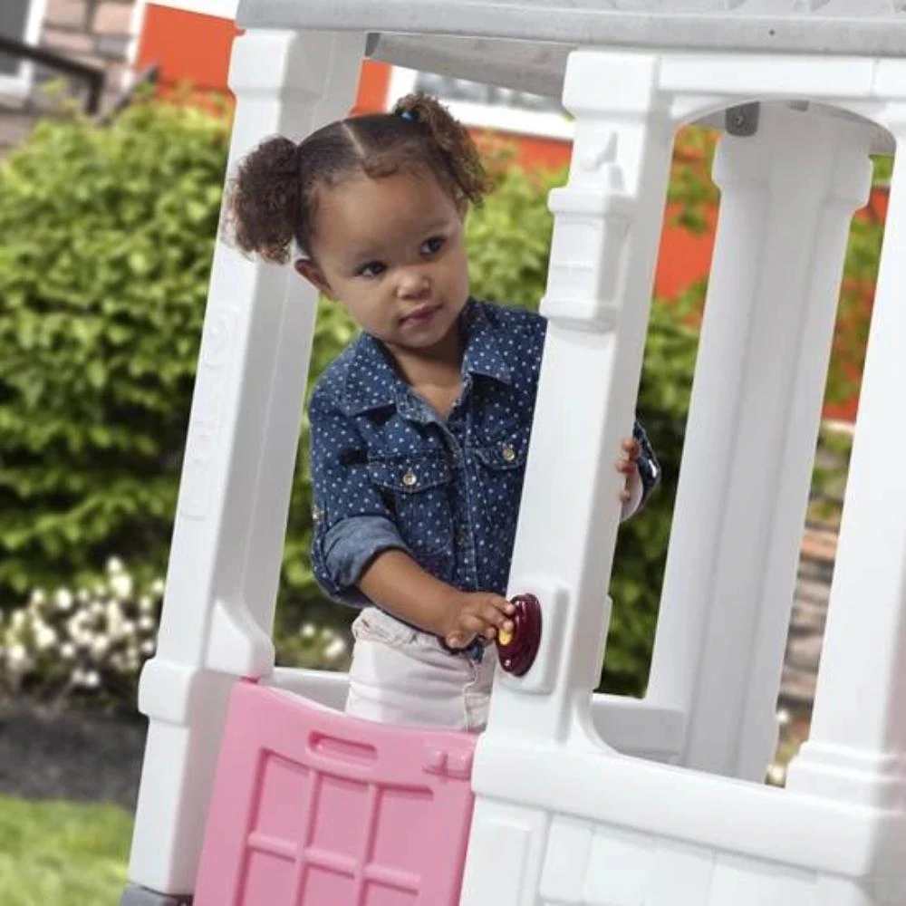 This trendy Step2 Kid’s Playhouse is the perfect size for little ones to entertain their pals. This compact playhouse features a realistic-chime doorbell that alerts children when their guests have arrived. With a molded-in playhouse floor, mini-guests may be asked to take off their shoes so they don’t track dirt into the house! Made in USA of US and imported parts.