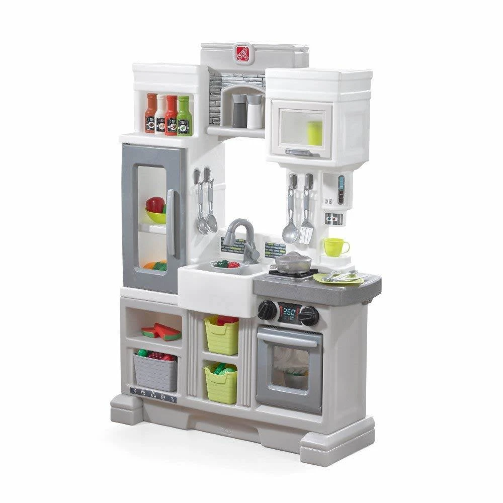 If your little one is eager to help out in the kitchen or always cuddle up against you when you’re watching Top Chef, they will love the Step2 Downtown Delights Pretend Play Toy Kitchen Set.Full of stylish details like the faux granite counter top, gooseneck faucet, and subway tile backsplash behind the sink, your kiddo can enjoy the functionalities of a grown-up kitchen in their size.Your aspiring chef will be able to whip up delicious culinary masterpieces that even Padma Lakshmi will love with this Step2 kitchen set.