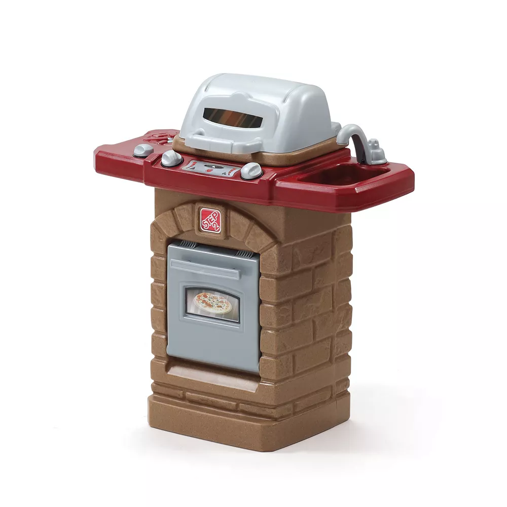 Host a backyard cookout with this Step2 outdoor stone oven barbecue grill and the included hot dog accessories.