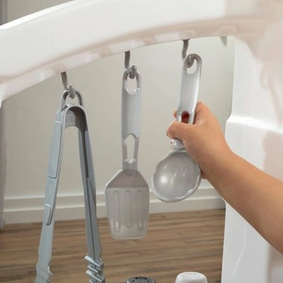 From the molded-in single-serve coffee station and realistic amenities to the modern detailing and working appliance doors, the Step2 Fun with Friends Kitchen™ is a cozy play kitchen packed with tons of kid-friendly functionality! This stylish pretend play kitchen includes a molded-in sink, pretend appliances, realistic stovetop burner with lights and sounds, and more. Little chefs can’t wait to entertain in this large play kitchen for kids, complete with a station for their pretend pets to eat and drink. Did you know pretend kitchen role play encourages kids to think creatively? It’s true! They’ll practice engaging social play to flex skills like sharing, storytelling, and problem solving with kitchen play, too. Made in the USA of US and imported parts.