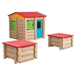 - The playhouse also comes with a patio seating for two people to lounge and relax on