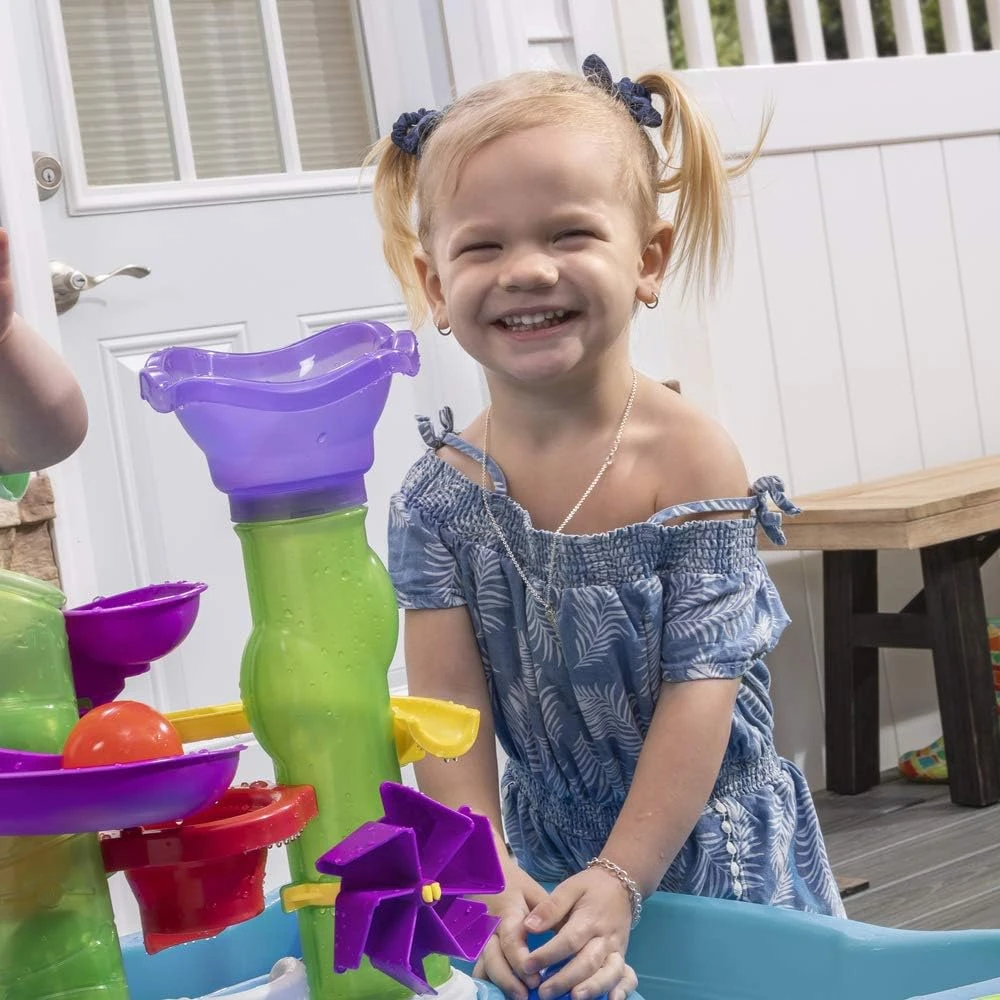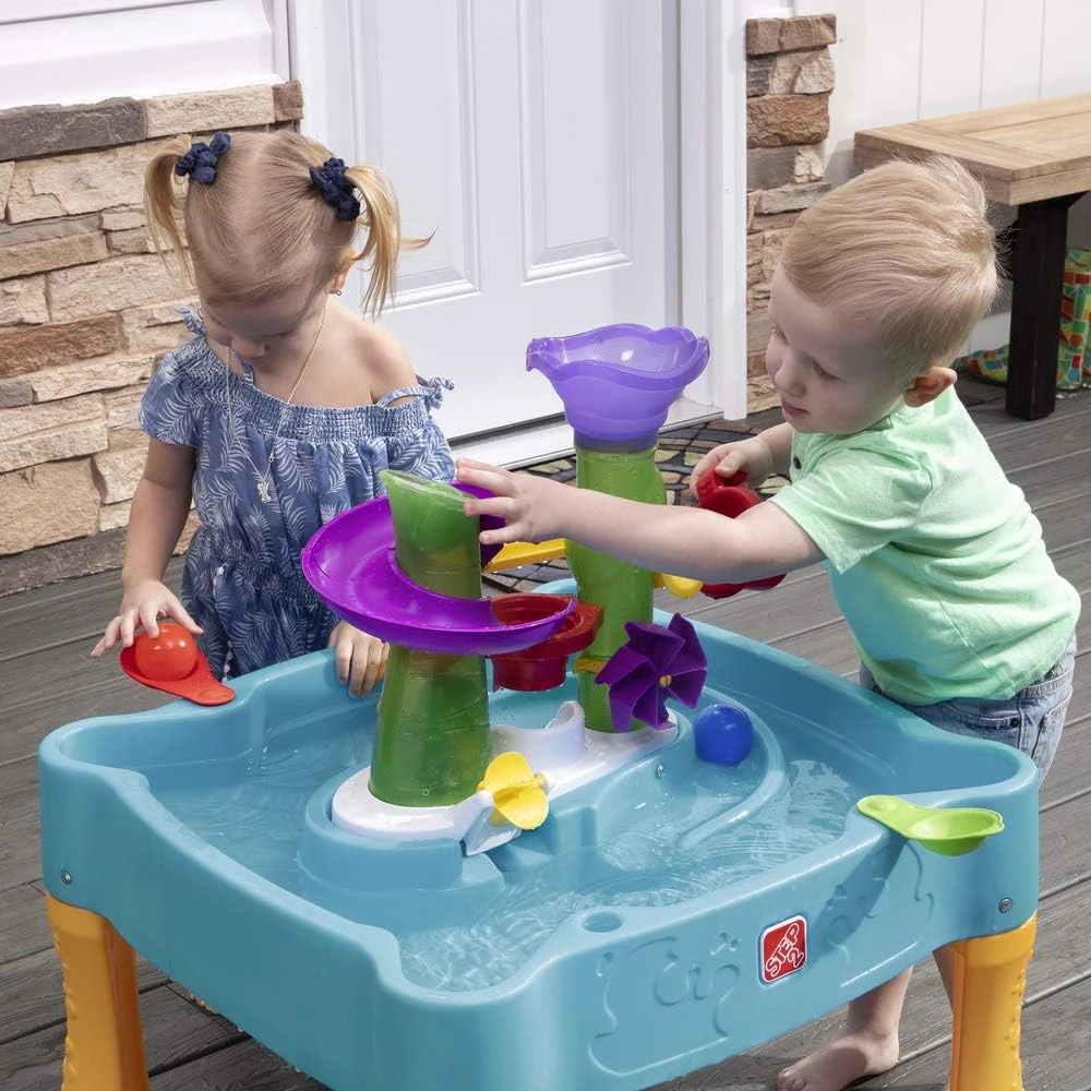 Step2 Lazy Maze River Run Water Table, Includes 6 balls, 2 flippers and 2 pouring cups, Blue and Orange