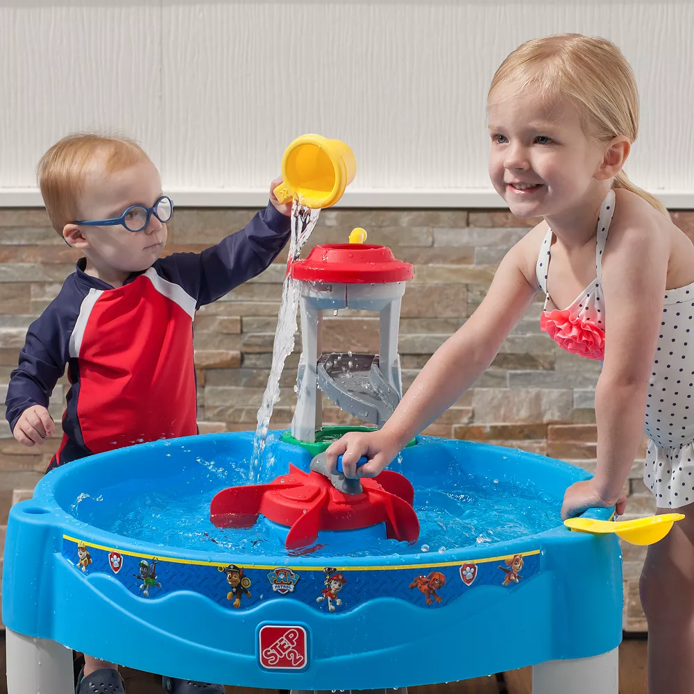 - Water table with lookout tower slide, cat tail scoop, cup, flipper, and 4 characters (Chase, Zuma, Marshall, and Skye)