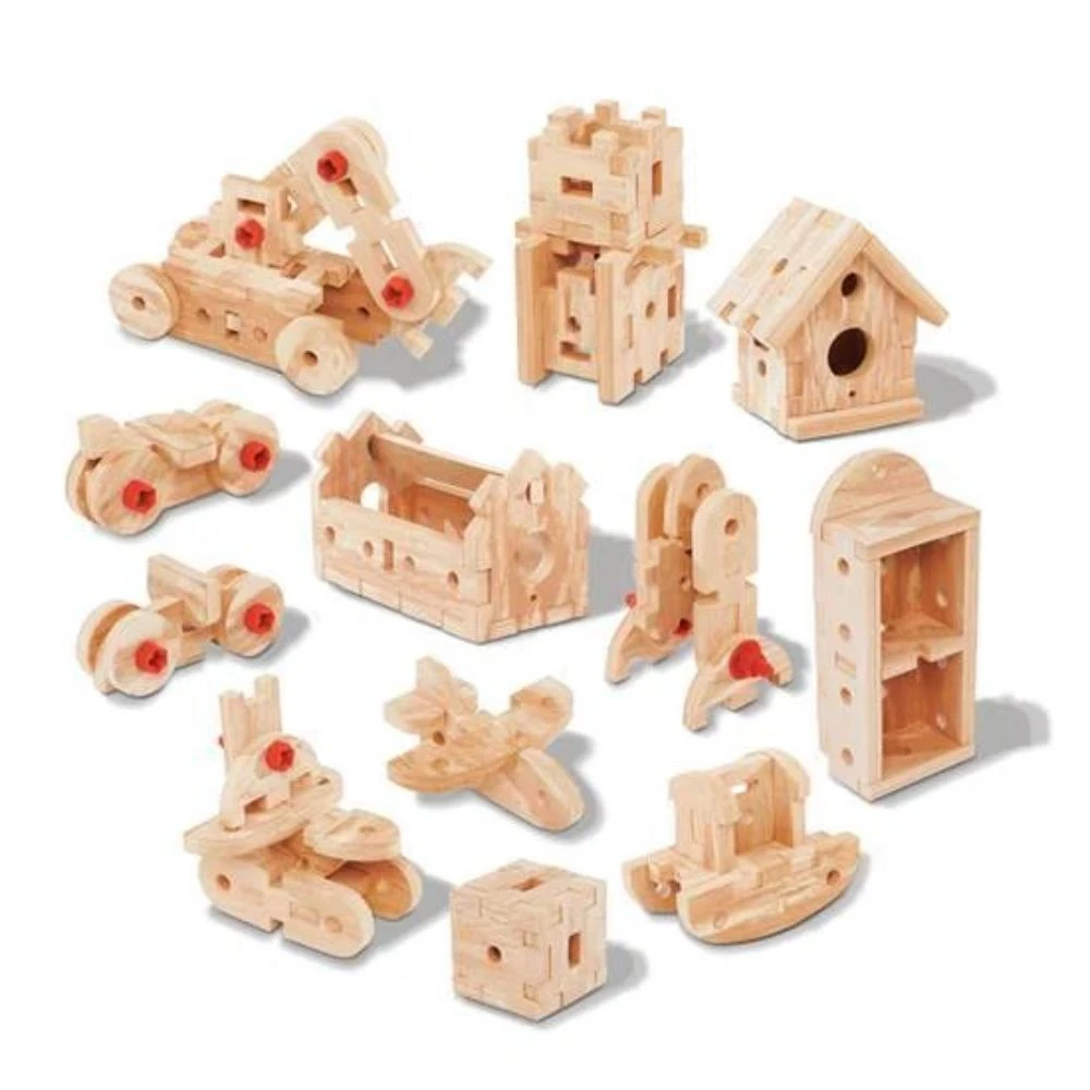 - Realistic wood pieces made of flexible Durafoam™ include holes and cutouts for easy assembly.